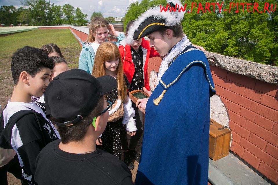 Для выпускного вечера мы предлагаем интерактивную костюмированную игру (квест) на территории Петропавловской крепости. «Петровский выпускной» - это квест, где ребята знакомятся с Аптекарем, Инженером и Художницей, мастерами, создававшими город Петра. Выполняя задания мастеров можно найти волшебную карту, охраняющую наш город.